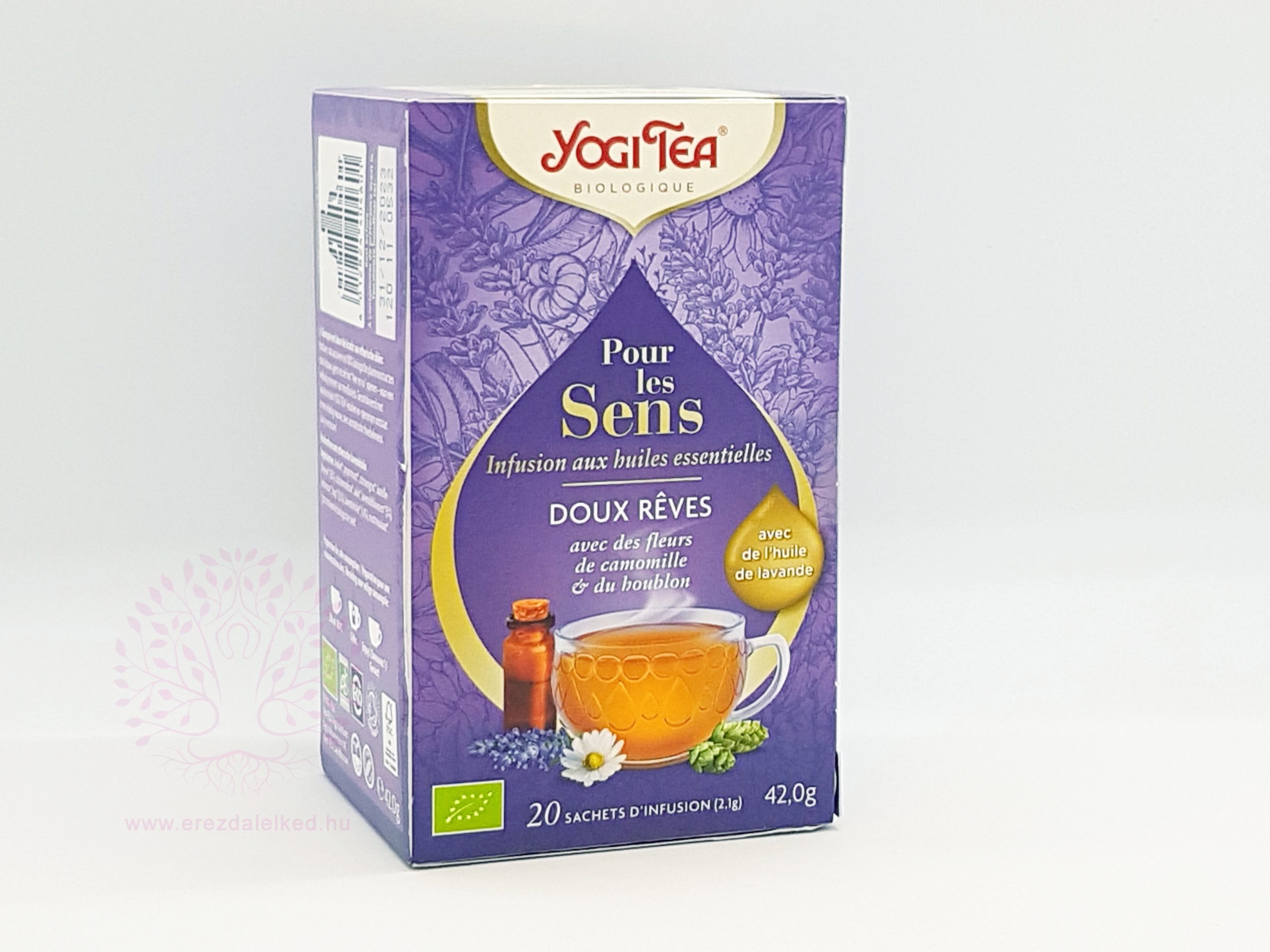 Biotermék. Gyógynövénykeverék levendula esszenciális olajjal, kamillavirággal és komlóval. Nem tartalmaz koffeint.